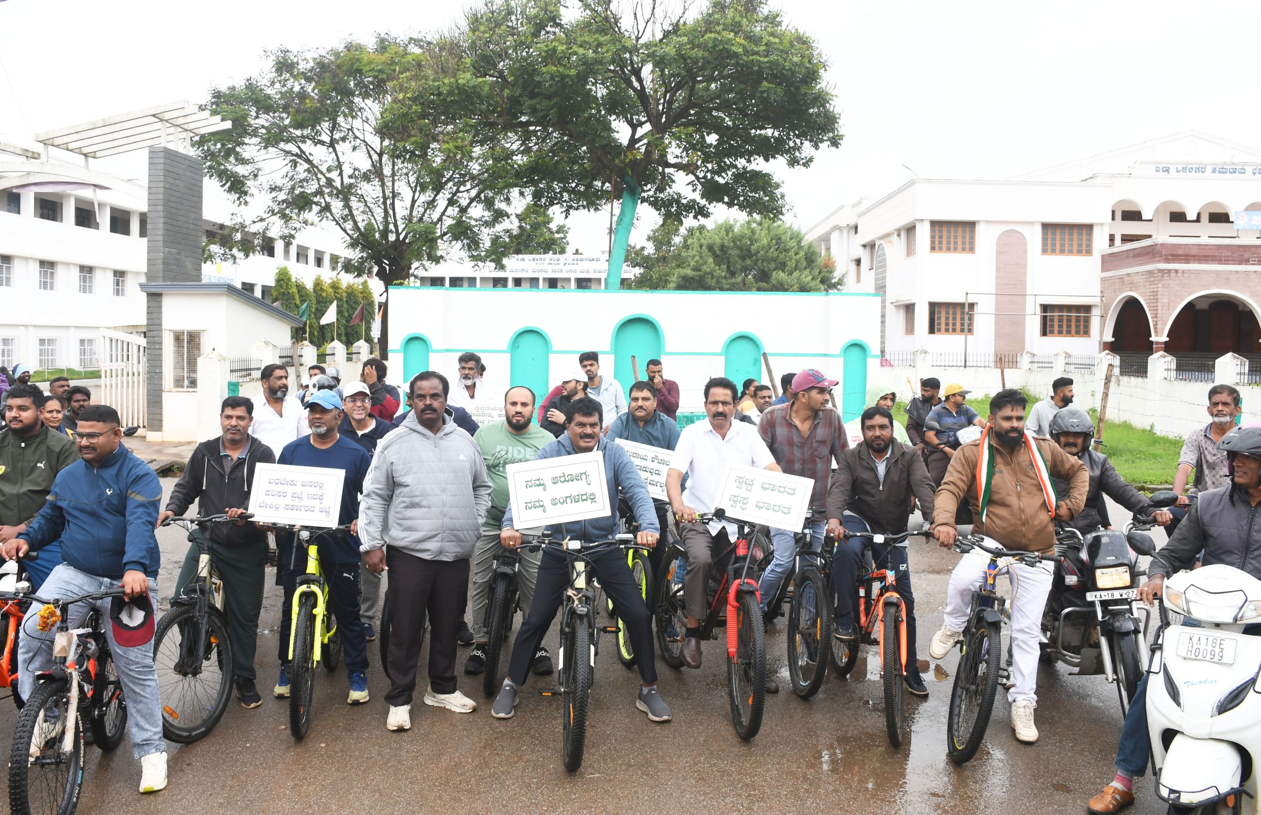 ನಗರದ ಇಂಡಿಯನ್ ಐಸ್ಕ್ರೀಂ ಪಾರ್ಲರ್ ಬಳಿ ಸೈಕಲ್ನಲ್ಲಿ ನಗರ ಪ್ರದಕ್ಷಿಣೆ ಕೈಗೊಂಡ ಕಾರ್ಯಕ್ರಮಕ್ಕೆ ಚಾಲನೆ ನೀಡಿದ ಪರಿಸರವಾದಿ ಸ.ಗಿರಿಜಾಶಂಕರ ಮಾತನಾಡಿ, `ಸೈಕಲ್ ತುಳಿ, ಪರಿಸರ ತಿಳಿ’ ಕಾರ್ಯಕ್ರಮದಿಂದ ಗುಂಡಿಮಯ ರಸ್ತೆಗಳು, ಚರಂಡಿಗಳು ಸೇರಿದಂತೆ ವಿವಿಧ ಸಮಸ್ಯೆಗಳು ಗೋಚರವಾಗುತ್ತವೆ. ಈ ಪರಿಕಲ್ಪನೆ ಉತ್ತಮವಾಗಿದೆ ಎಂದು ಶ್ಲಾಘಿಸಿದರು.
